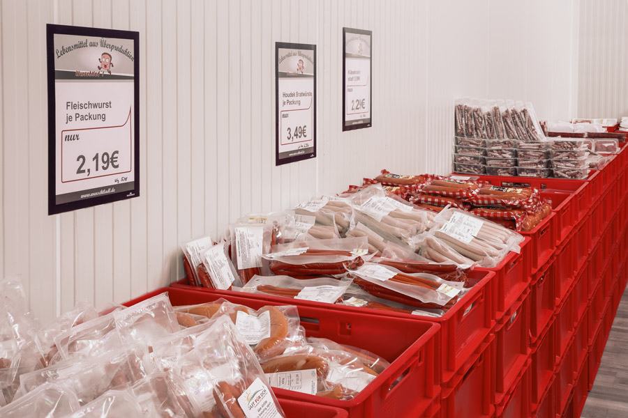 Was damals rein mit Wurstwaren begann, hat sich über die Jahre zu einem bunten Marktplatz für Lebensmittelretter entwickelt. Da wir gezielt Waren aus Überproduktionen aufkaufen, wächst und verändert sich unser Angebot ständig. Das macht jeden Besuch bei uns zu einer kleinen Entdeckungstour.