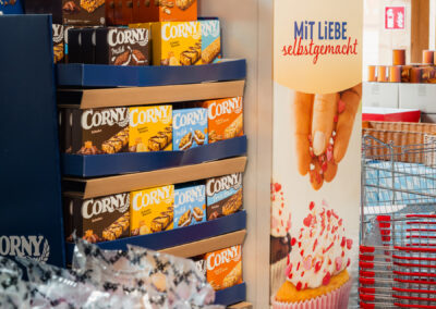 Eine große Auswahl an Süßwaren, Gebäck und praktischen Backzutaten.